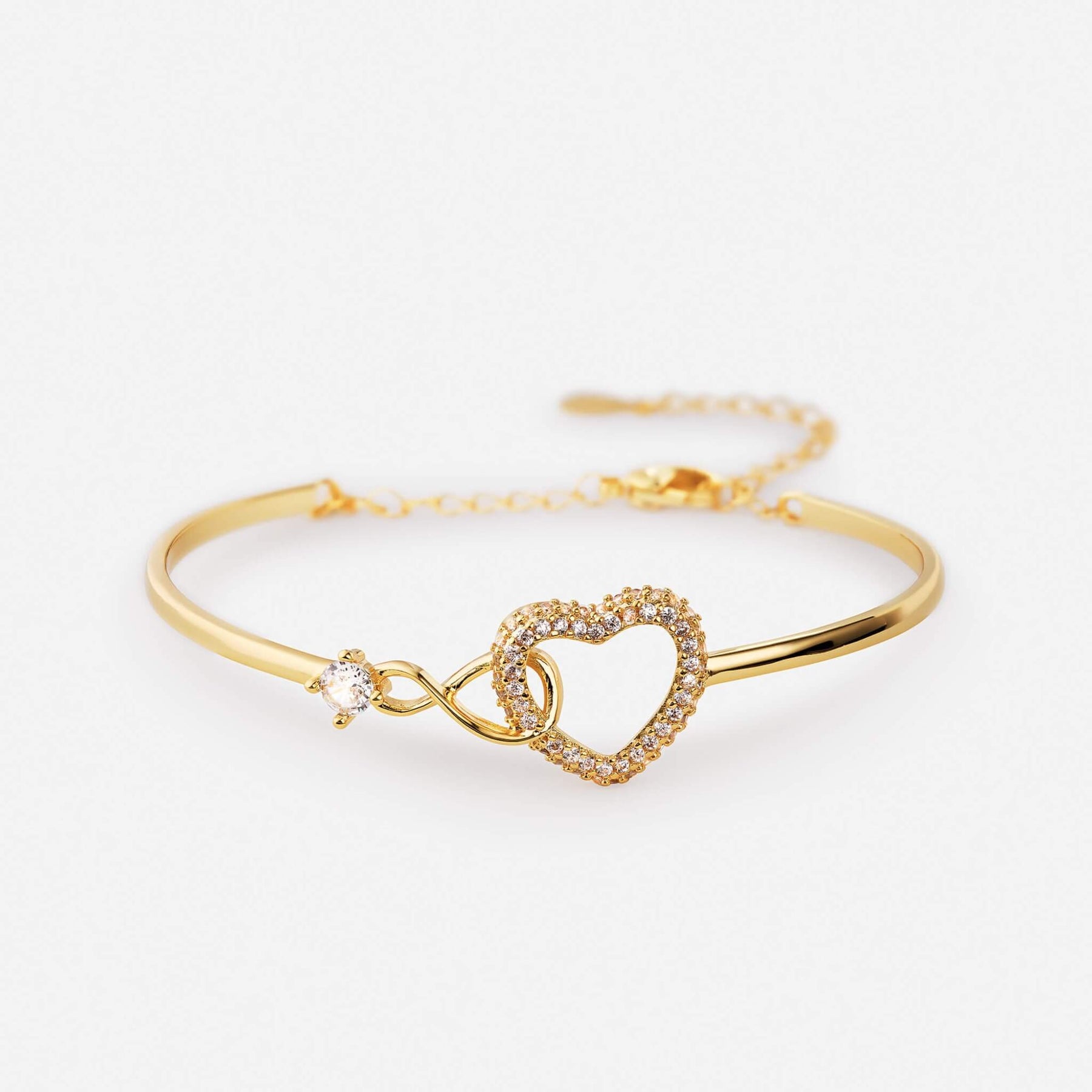 The Infinity Love Bracelet is a symbol of the endless love between you and your beloved. It is crafted with an interlinked infinity and heart charm, embodying infinite love and precious moments.
